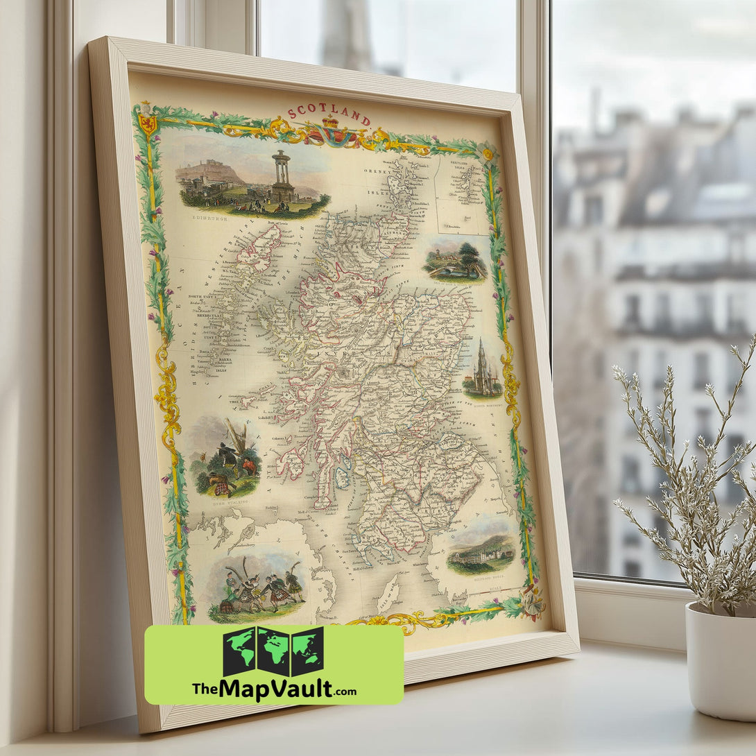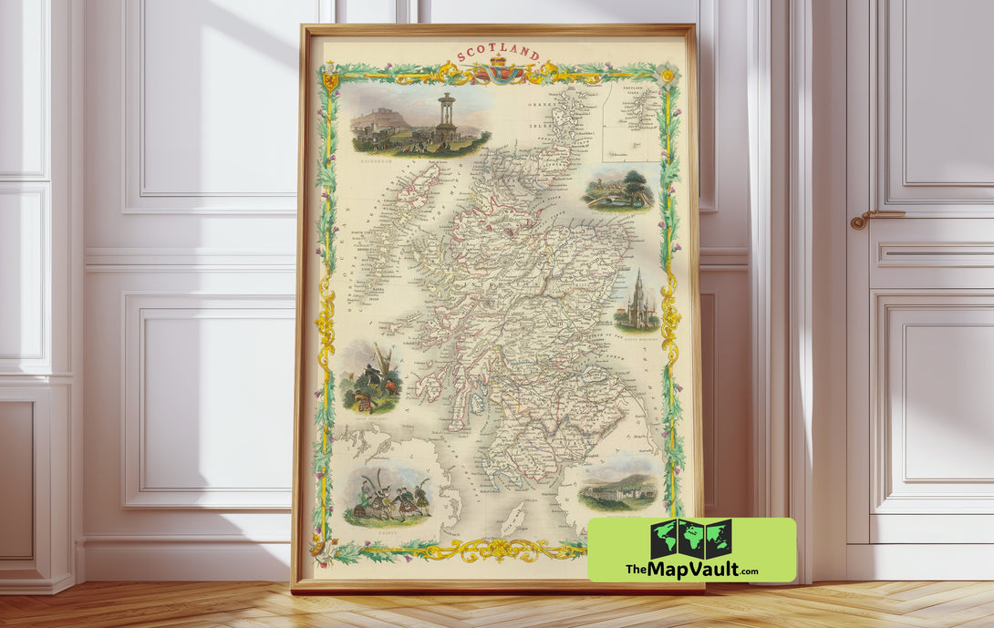Perfect for display in academic libraries, private studies, or cultural institutions, this historic map serves as both an educational resource and an arresting decorative piece. Its balanced composition and meticulous detail invite viewers to reflect on the nation’s evolution and celebrate its timeless legacy. Own a tangible piece of Scotland’s history that seamlessly bridges traditional scholarship with modern design.